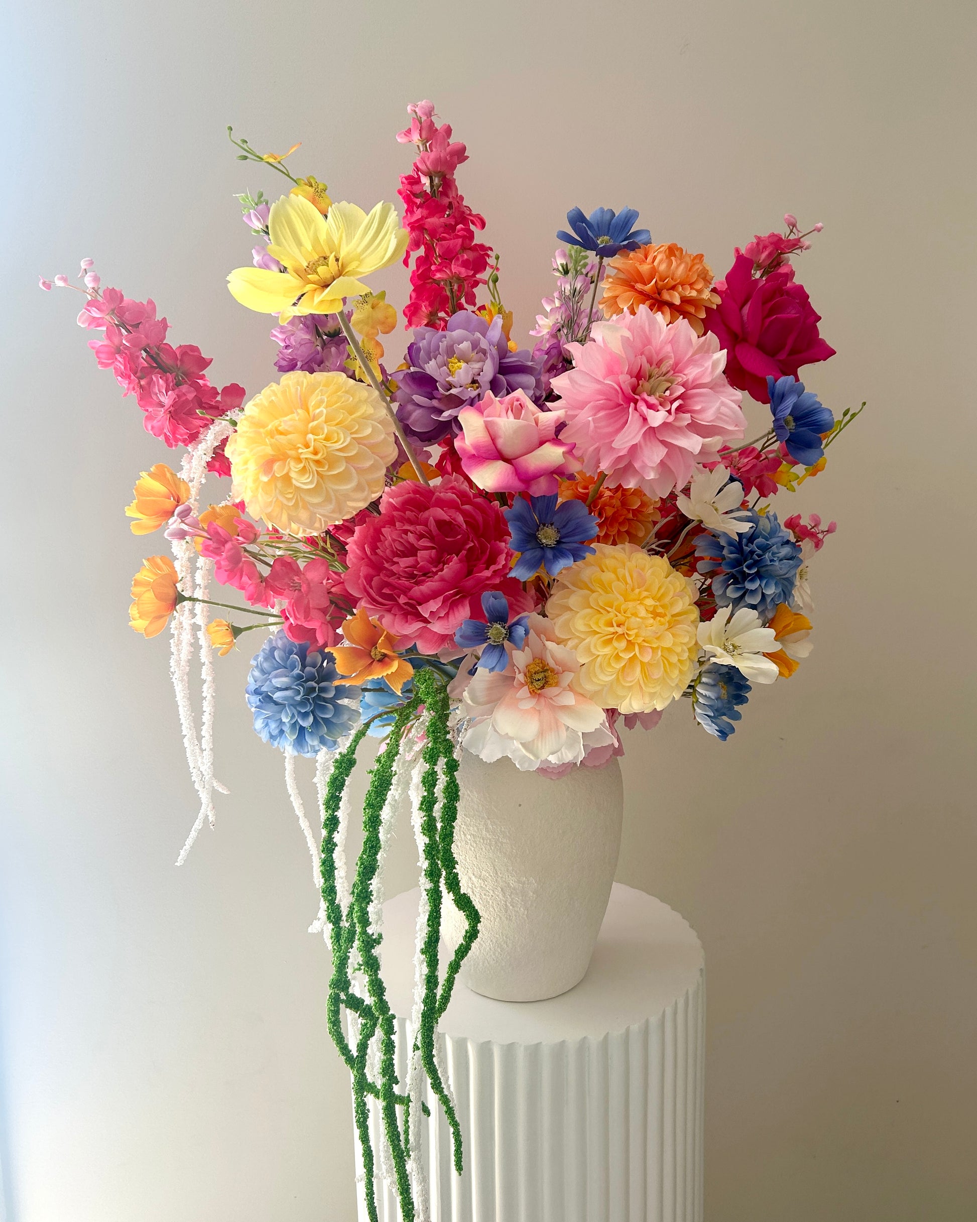 Expertly handcrafted with our premium everlasting faux blooms, these grand arrangements bring all the beauty of fresh florals with none of the upkeep. Perfect for weddings, events, business spaces, or as a luxe feature piece in your home.